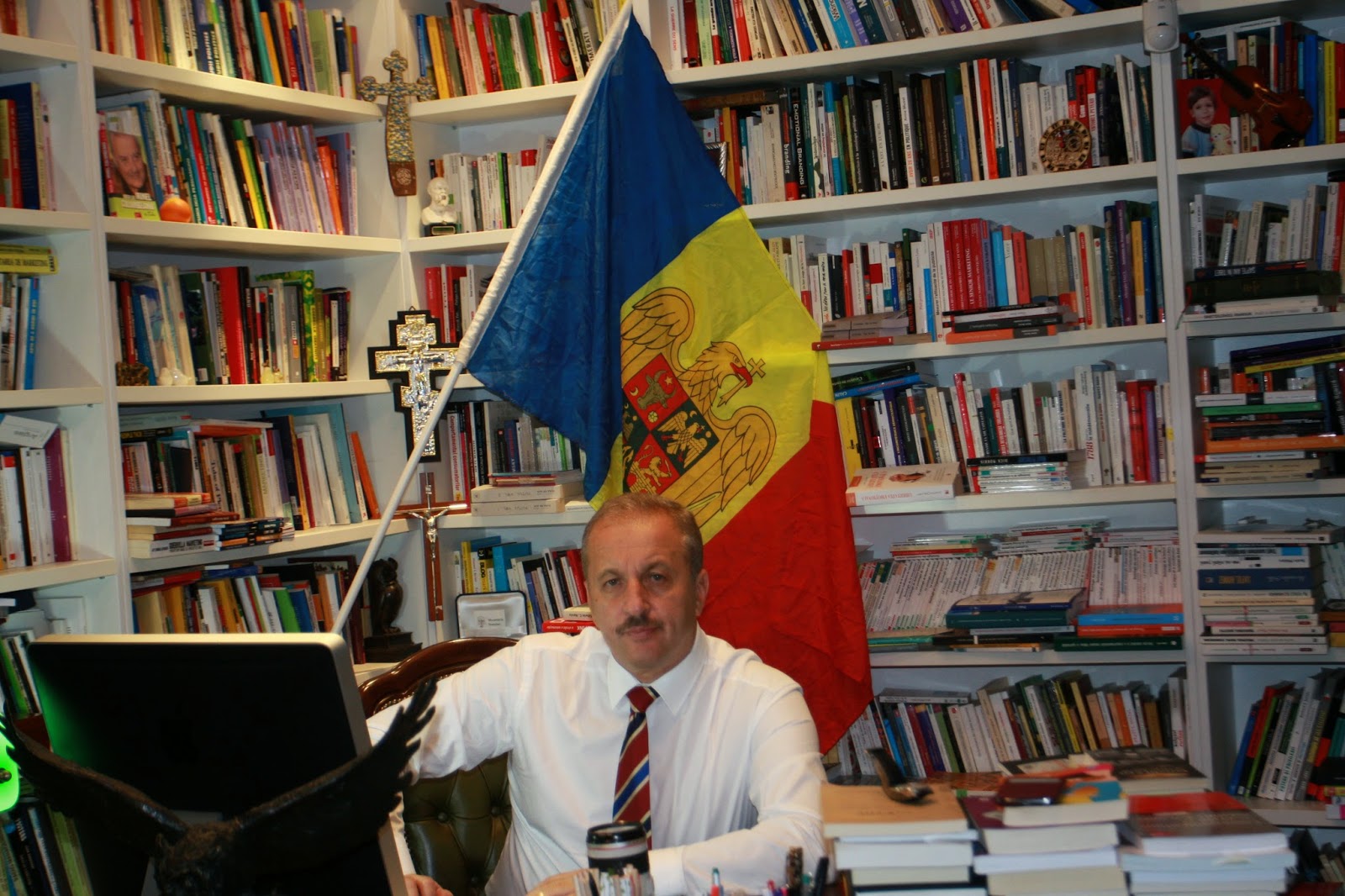 Astăzi, 20 octombrie, sunt alături de copiii noștri din Basarabia și Romania care încearcă să salveze onoarea mai multor generații. Incepând de astazi, în biroul meu de la Cluj, va sta steagul pe care prietenii mei din Basarabia mi l-au oferit joi noaptea într-o întalnire care m-a emoționat pentru toată viața.