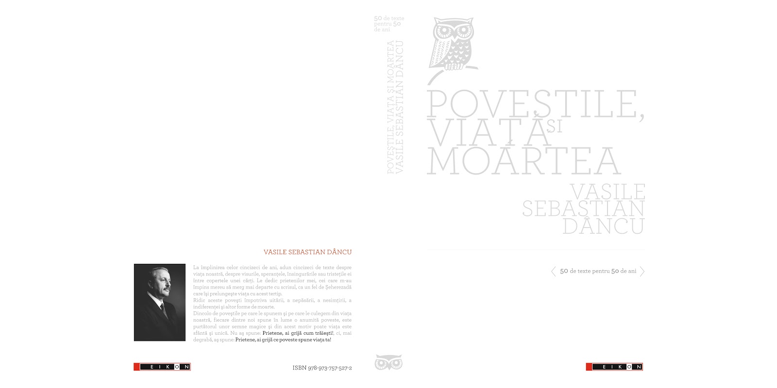 28. Poveştile, viaţa şi moartea. 50 de texte pentru 50 de ani de Vasile Sebastian Dancu – Editura Eikon / grafician: Dacian Ovidiu Vaidean