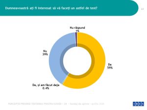 Peste jumătate dintre respondenți au opinii favorabile cu privire la posibilitatea efectuării testelor voluntare, contra-cost și aproape 6 din 10 români spun că sunt interesați să își facă un astfel de test.