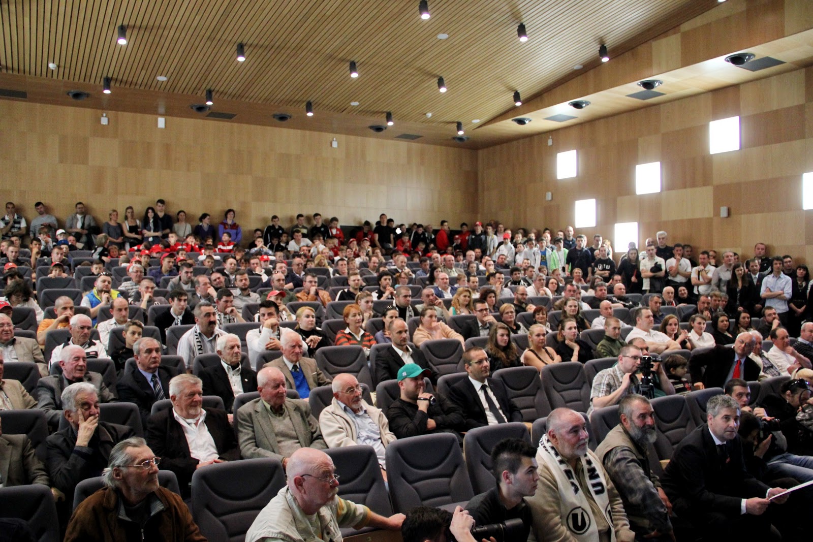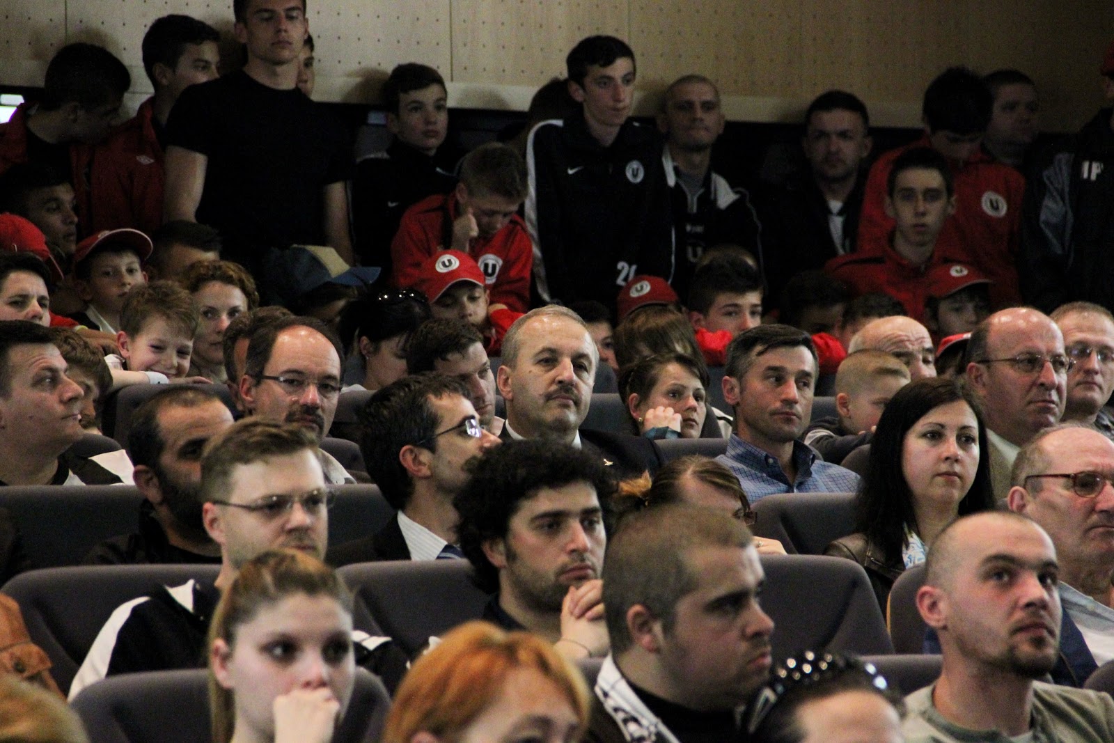 Șepcile roșii, cu ținutele lor serioase, cu o flacăra roșie deasupra inimii, umblau de acolo acolo, se fereau de camere, organizau, ajutau, nu luau microfonul să vorbescă. Un rol interesant de martori parcă acționand în transă, în oficierea unui ritual sacru, rol pe care l-am înțeles mai spre final cand am văzut că ei se ocupau de bătrânii uiști și de copiii de toate vârstele, mulți juniori la echipele de fotbal pitice ale Universității. Era parcă un instict, să-i lege pe copii de imaginea lui Remus Câmpeanu, Filip Lăzăreanu, Nicolae Szoboszlay. Să-i atingă, să nu uite, să ducă mai departe.