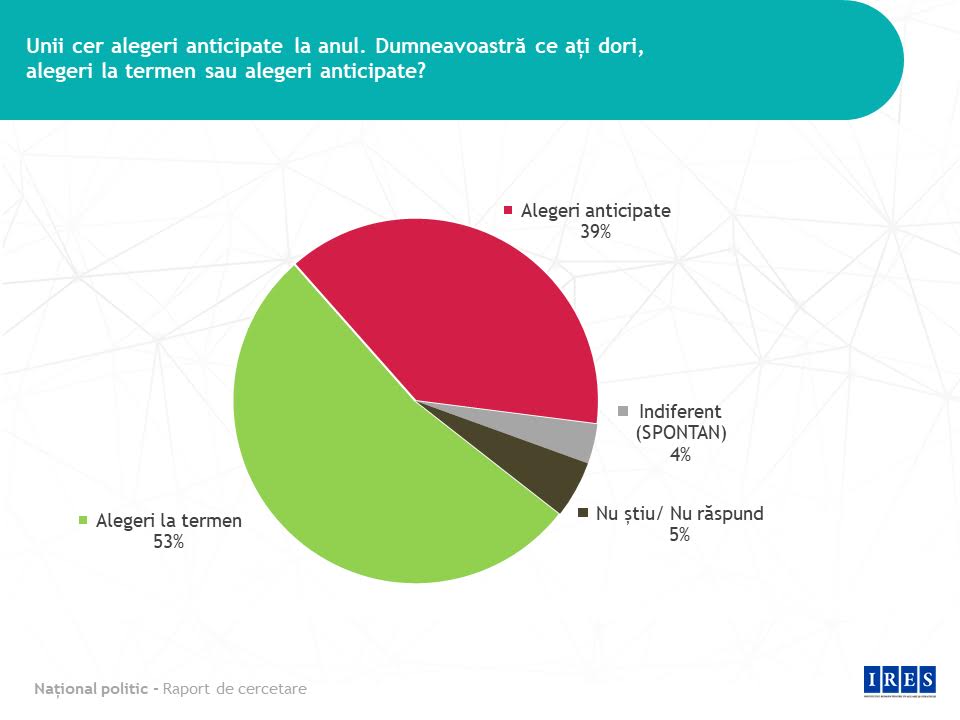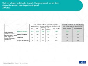 1. Imediat după alegerile prezidențiale, când alegerile anticipate încă nu erau promovate de Președintele Johannis, opinia publică vroia alegeri la termen, să zicem, un reflex democratic. Doar 39% vroiau alegeri anticipate, nici măcar votanții liberali nu erau atât de atinși de acest microb.