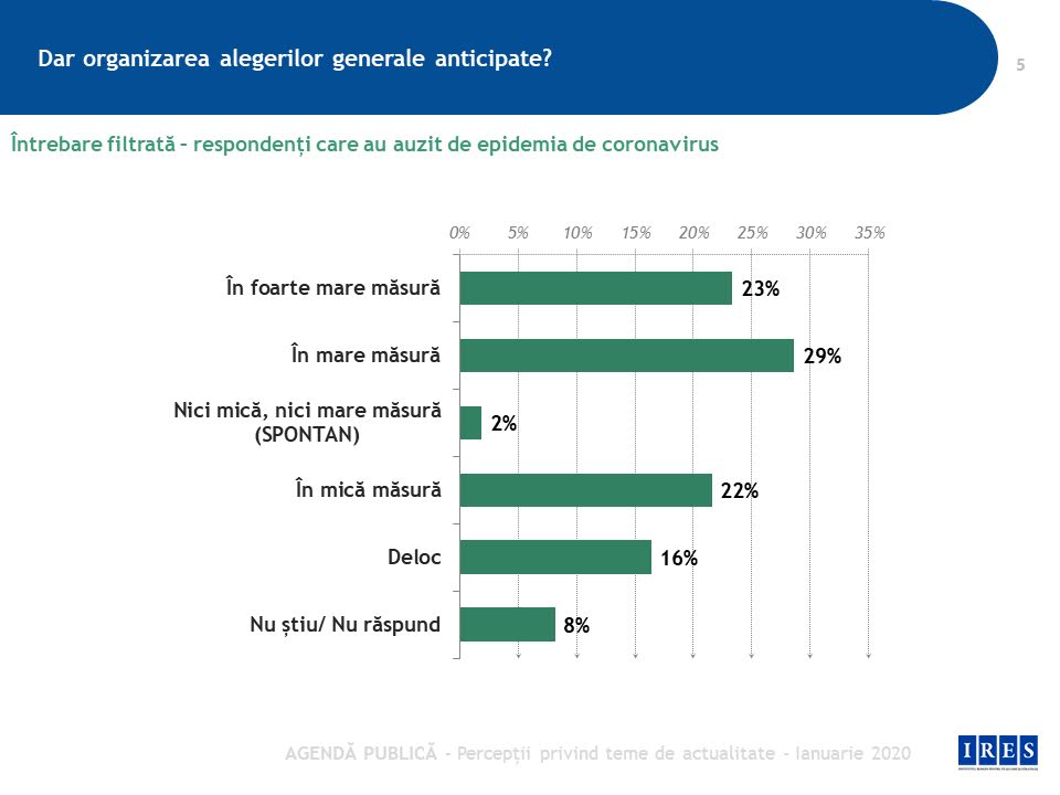 2. În 21 februarie 2020, IRES a realizat un alt studiu în care publicul a fost întrebat despre alegeri anticipate și deja se observă crearea unei majorități care oferea vântul ce sufla în pânzele guvernului Orban pentru organizarea alegerilor anticipate.