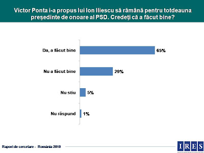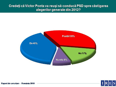 In alta ordine de idei, efectul Ponta nu e de atat de mare, in conditiile in care, cu doua saptamani inainte, efectul …Geoana ducea partidul la 30%. As sustine mai degraba ideea ca alegerea lui Ponta a atras maxim 4%, de la o medie de 28% pana in ziua congresului la una de 32%, ceea ce oricum e de apreciat. Era interesant daca mai adaugati un val dupa 22 februarie…
