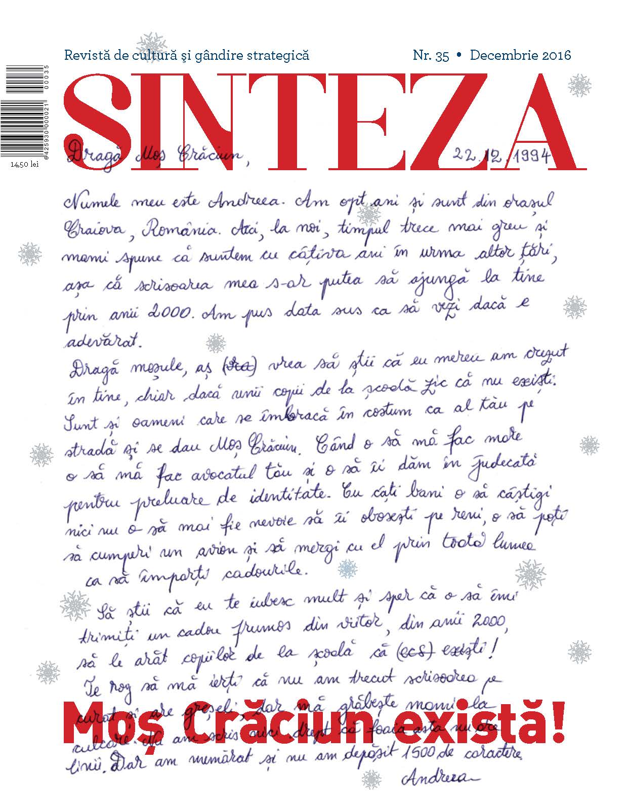 Editorial pentru SINTEZA, Revista de cultură şi gândire strategică, numărul 35, decembrie 2016.