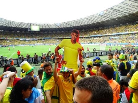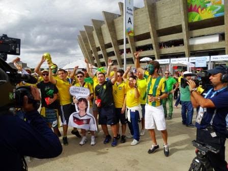 Am ajuns pe aeroport când se amesteca ziua cu noaptea, iar orizontul era înroșit de răsăritul soarelui. Văzusem pe un site de meteo că ziua de 8 iulie urma să fie singura zi fără niciun nor dintr-o serie de două săptămâni. Orașul minerilor părea să aibă norocul unei zile istorice. Și chiar a fost, doar că nu în sensul în care se așteptau brazilienii. Orașul era invadat de brazilieni din toată țara, sute de oameni îmbrăcați în tricoul galben rătăceau prin oraș, năuci, în căutarea unui bilet norocos. Aveam două bilete în plus și le-am oferit gratis unui cuplu de vreo 40 de ani, nebuni după fotbal, veniți din Sao Paulo. Când le-am spus că le ofer cele două bilete, Leandro era să îngenuncheze la picioarele mele, noroc că m-am prins la timp. Era un om care trăia pentru fotbal, dar soția sa era mult mai pasionată decât el. Orașul cu peste două milioane și jumătate de oameni era îmbrăcat în tricoul național, de la vânzătoare, la șoferii de taxi. La plecare, într-o lungă discuție, un șofer brazilian mi-a spus că poporul acesta are parte doar de tristeți și de o singură bucurie, fotbalul. Cu trei sau patru ore înainte de începerea meciului, puhoaie galbene de suporteri se revărsau spre Stadio Mineirao, dansând după un cântec din care nu am înțeles decât că este o polemică cu Maradona sau pur și simplu legănându-se după o muzică interioară. De fapt, vedeam cum bucuria se revărsa pe străzi, dar nu bucuria victoriei, ci bucuria pentru fotbal. La începutul meciului, când s-a intonat imnul, toți brazilienii au început să cânte cu mâna la inimă, iar unii dintre spectatori aveau ochii umezi de lacrimi.