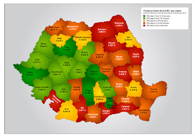 Acolo, organizațiile politice sunt mai puternice, oamenii sunt mai docili. Liderii de județe sunt mai puternici. Arătam într-o postare anterioară dependenţa de culoarea primarilor a procentului de prezenţă la vot. Dacă privim harta cu o estimare a PIB pe cap de locuitor vom vedea că se respectă, cu mici excepții, harta mobilizării la referendum.