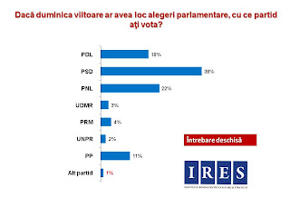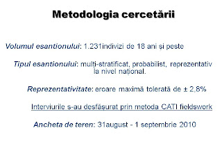 In zilele următoare o să încerc o analiză mito-critică, dar până atunci vă pun la dispozitie, dragi cititori, un grafic cu rezultatele ultimului sondaj de opinie privind intentiile de vot ale romanilor. Ultimele interviuri s-au facut in 1 septembrie 2010.