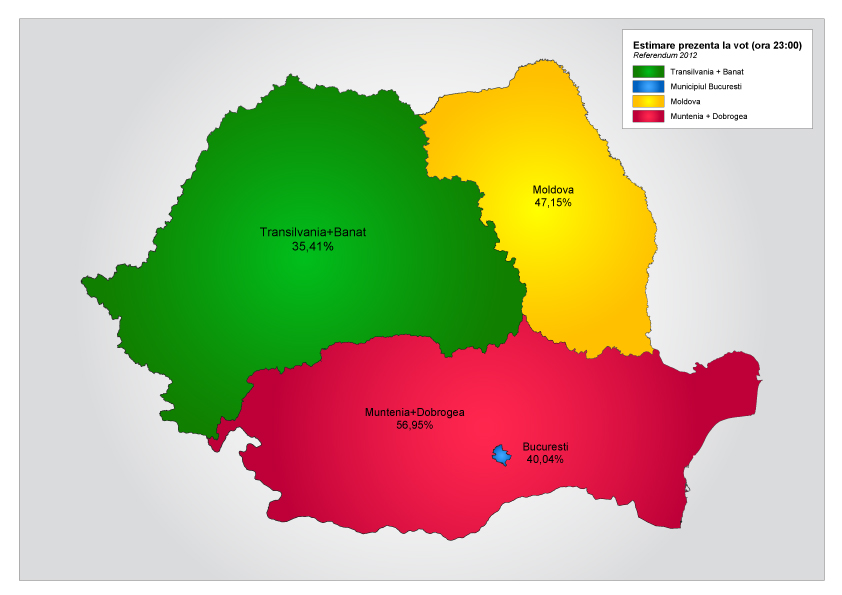 Politicienii vor da tot felul de explicații, ba că este de vină UDMR sau ungurii cei răi, ba că este boicotul PDL. Sigur, toate acestea au avut o influență, dar nu explică faptul că, de multă vreme, proiectele de la București sunt torpilate constant de votul din Transilvania. Năstase a pierdut în Transilvania, Geonă tot în Transilvania și-a rupt gâtul, iar referendumul a eșuat tot din cauza prezenței mici din Transilvania și Banat ținând cont de ponderea mare pe care această regiune o deține din totalul populației României. Cei care vor spune că Transilvania este pedelistă greșesc, deorece la ultimele alegeri locale PDL a avut o pierdere masivă în Transilvania. Practic dezastrul PDL de la alegerile locale a fost provocat de faptul că Transilvania a lasat din brațe partidul lui Traian Băsescu. Chiar votul împotriva lui Traian Băsescu de la acest referendum arată că Transilvania a depășit faza de ”portocaliu”.