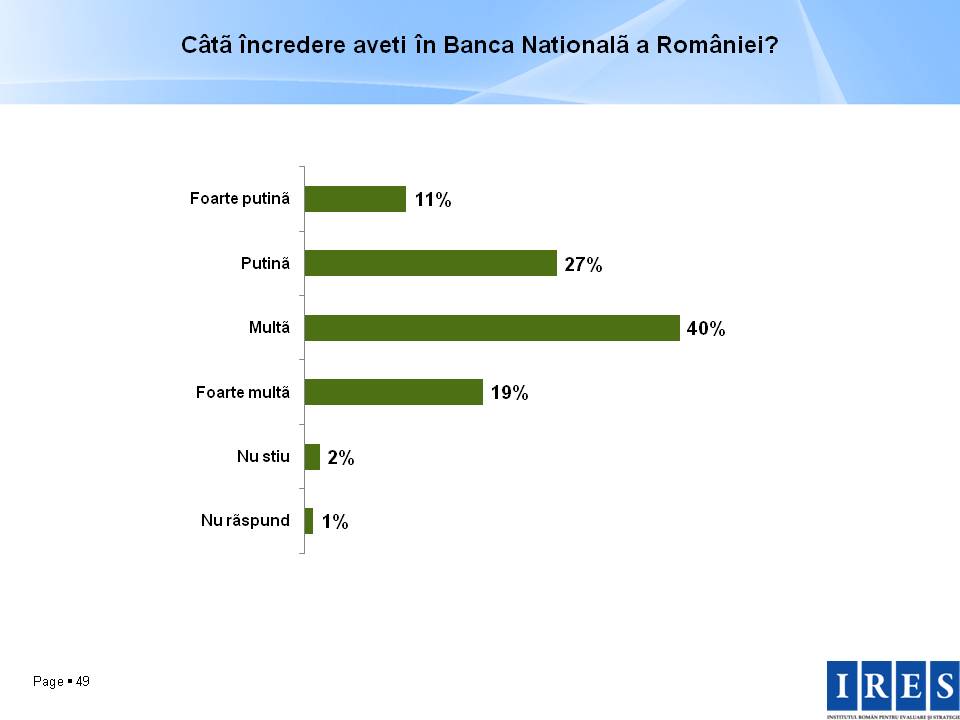 Se nasc noi instituții psihologice, instituţii generate de spaimă sau neîncrederea în alte mecanisme ale functţionării statului. De douăzeci de ani avem două instituții care polarizează încrederea românilor, datorată spaimei de românilor de viitor, adică BISERICA şi ARMATA. Sunt instituții de siguranţă psihologică, instituțiile ultimei sanșe, ale ultimei stații. Analizând situația în agenda publică din februarie 2011 se poate observa nașterea unui nou cuplu de instituții aflate pe primele două locuri ale încrederii publice în contextul unor arestări masive şi acţiuni de forță ale statului, BNR şi SRI. Apare şi o învestire simbolică a unor instituții care pot crea sentimentul că statalitatea nu este ameninţată. Banca Naţională a României obţine o încredere de 59%, iar SRI 37%. Tandemul de instituții care se naște în criză după cel născut după Revoluţie, al Bisericii și Armatei.